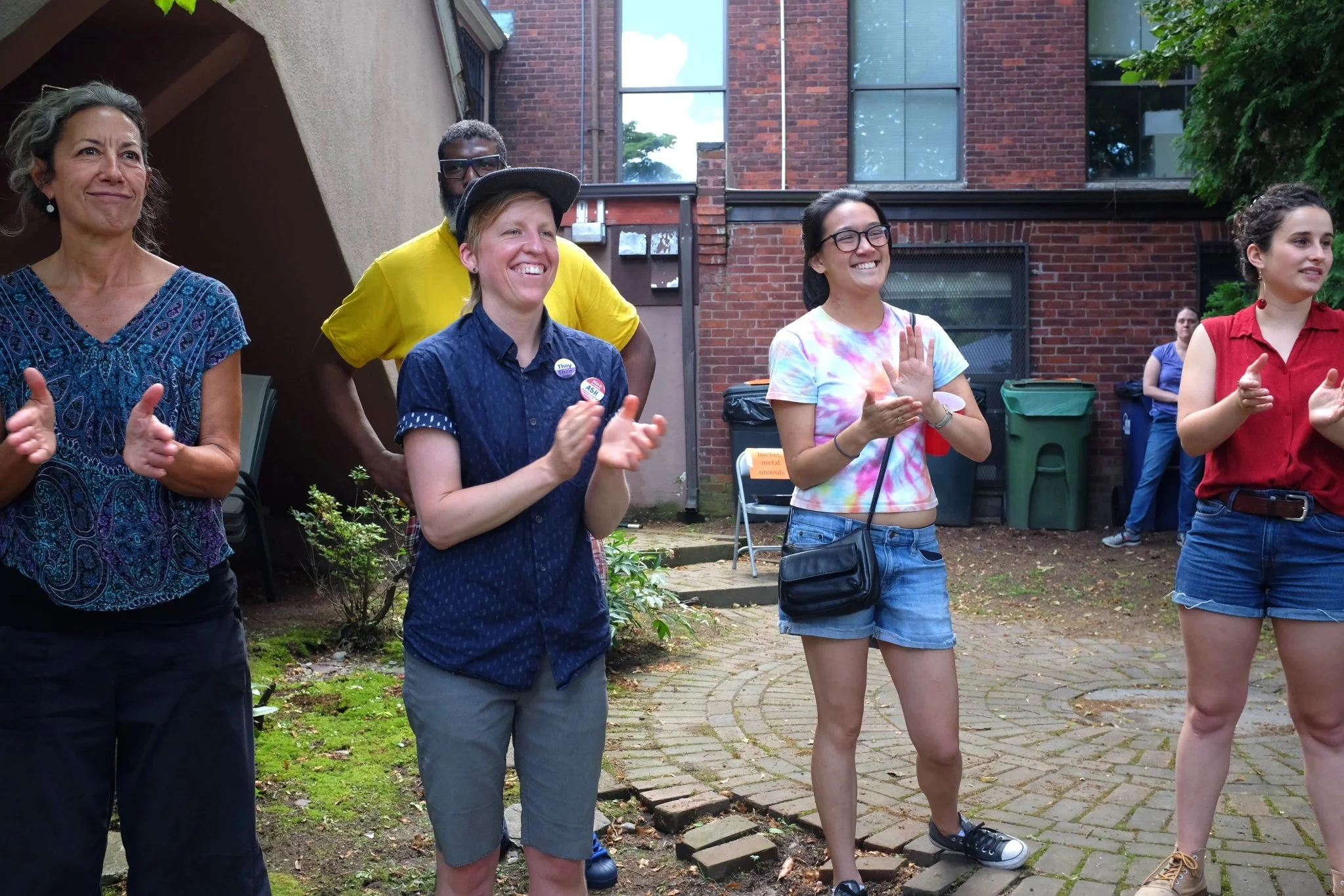 We launched in 2021 out of a decade of collaboration with small justice and liberation organizations. We operate in deep partnership with New England movement organizations who are either engaged in basebuilding-style organizing or in solidarity economy work.